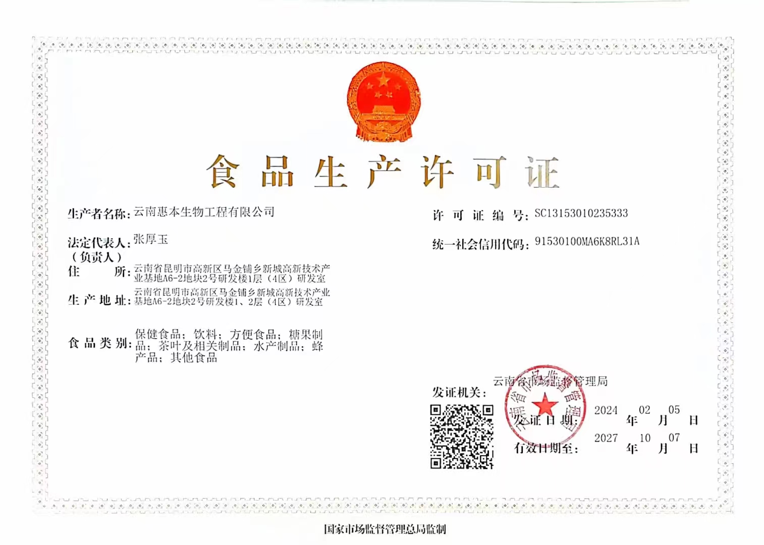 云南惠本生物工程有限公司地处昆明高新区马金铺新区国家生物产业基地,是昆明高新区重点引进的生物产业项目。公司是国家高新技术企业,...