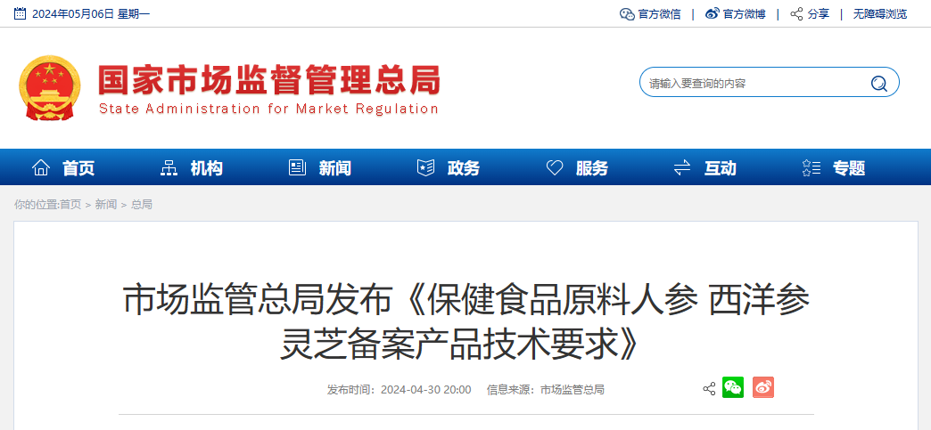 2024年4月30日,国家市场监督管理总局发布《保健食品原料人参西洋参灵芝备案产品技术要求》(以下简称《产品技术要求》),已于...