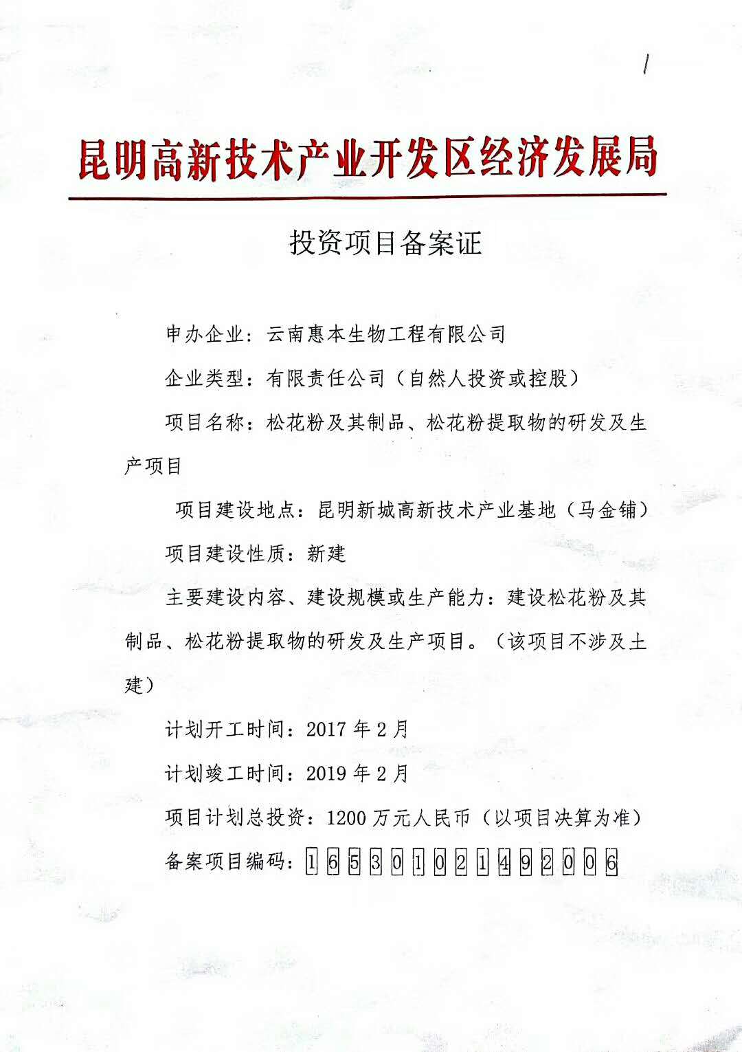 热烈祝贺云南惠本生物工程有限公司入驻昆明高新区,成功立项!