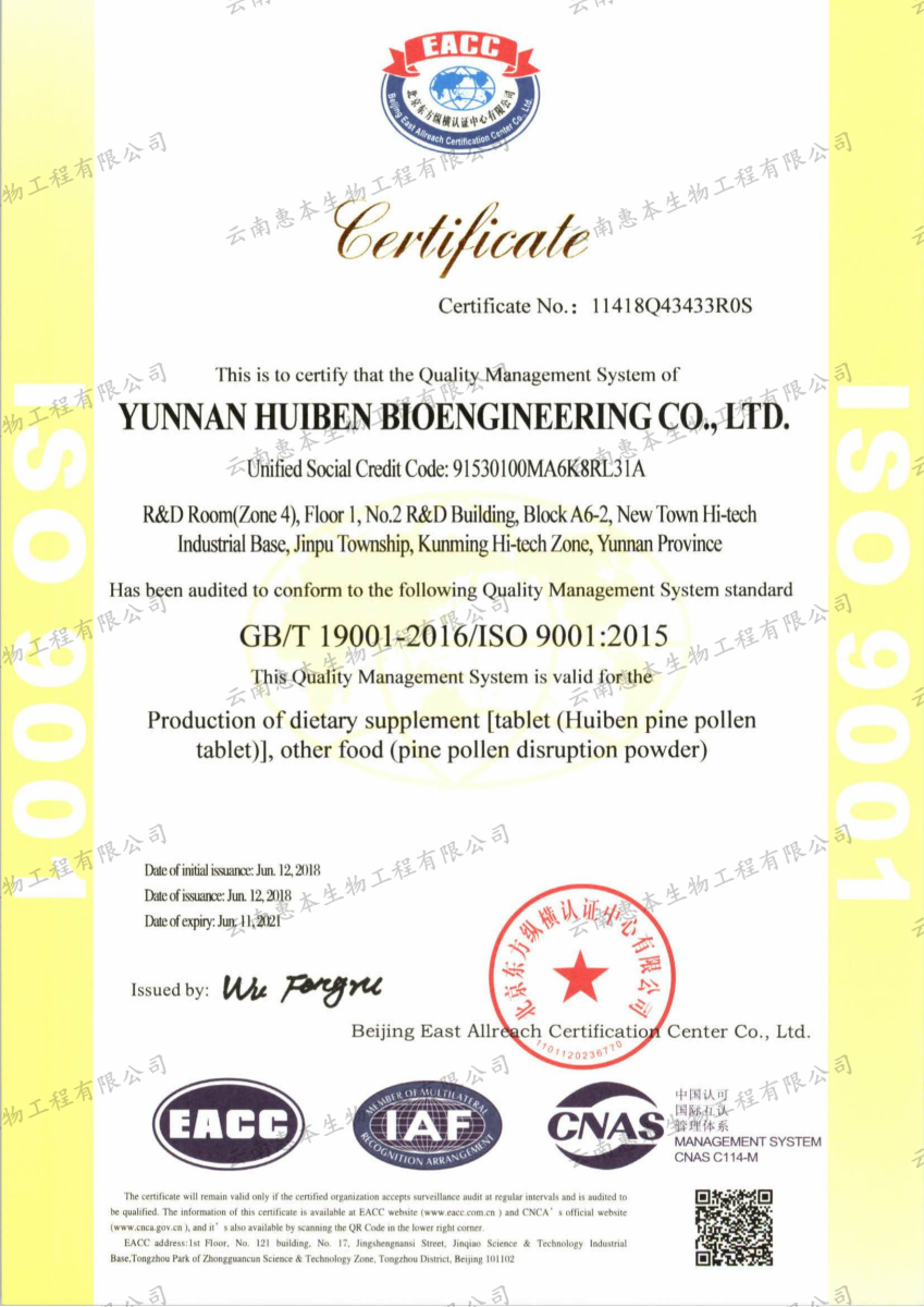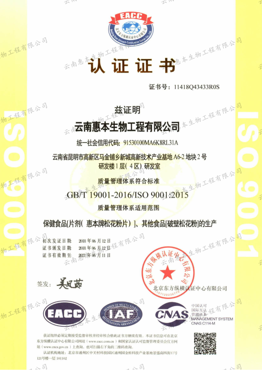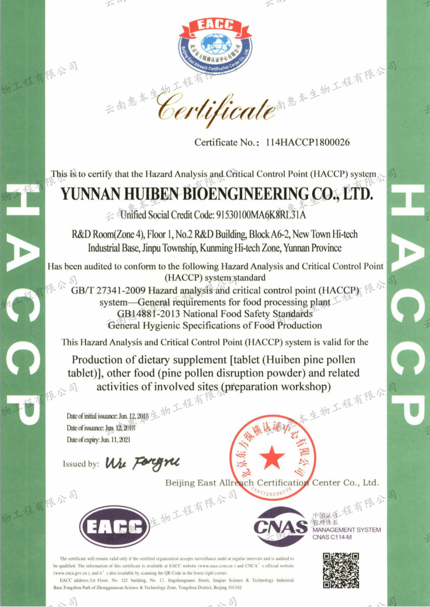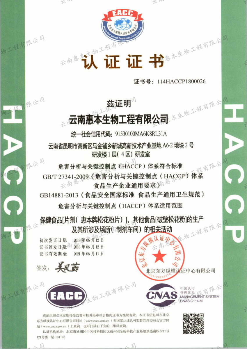 惠本顺利通过HACCP危害控制体系、ISO9001质量管理体系认证