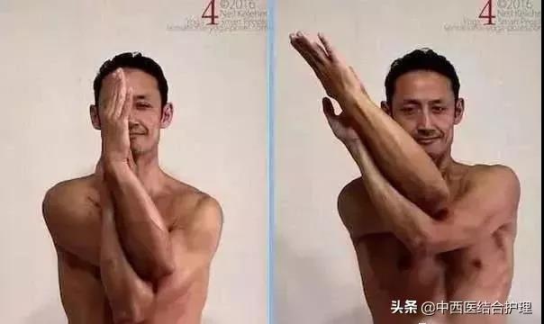 这个肩部伸展体式有点像锁喉动作