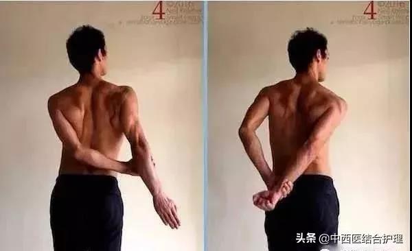 手臂向后拉伸,肩胛骨向内转动,同时手臂向内转动